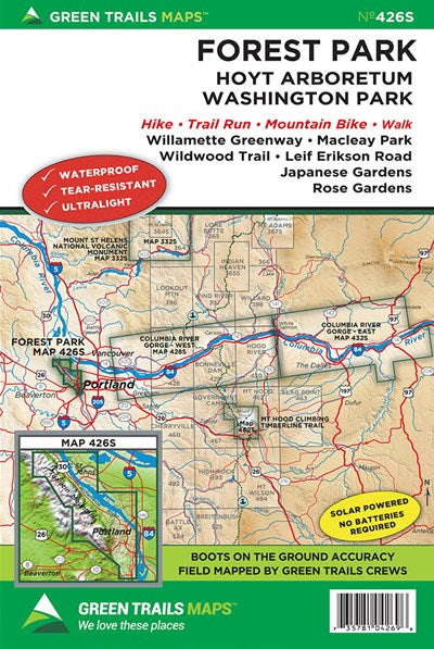1:18000 detail map of the largest forested City Park in the USA, Includes Macleay Park, Council Crest, Marquam Nature Park and a 1:9000 Inset of Washington Park/Hoyt Arboretum. Printed on a rugged Waterproof - Tear Resistant Sheet.