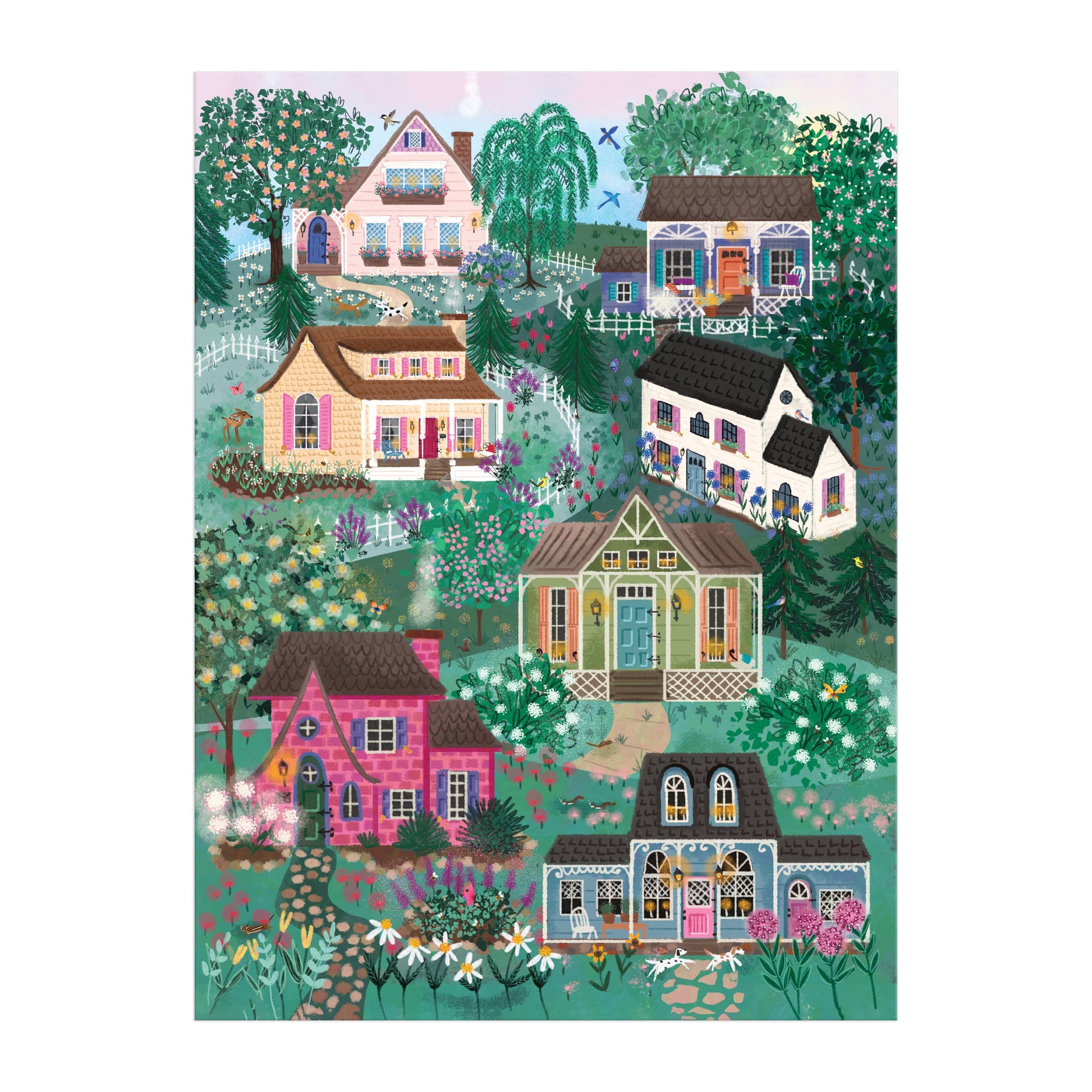 1000 PIECE PUZZLE – Immerse yourself in the picturesque charm of a quaint neighborhood with Galison's captivating 1000-piece puzzle featuring artwork by Joy Laforme. Each piece invites you to stroll through a delightful scene of beautiful cottages adorned with vibrant flowers, capturing the essence of idyllic suburban living. As you unravel the puzzle's intricacies, feel the sense of accomplishment with each fitting piece, and witness the scene come to life before your eyes