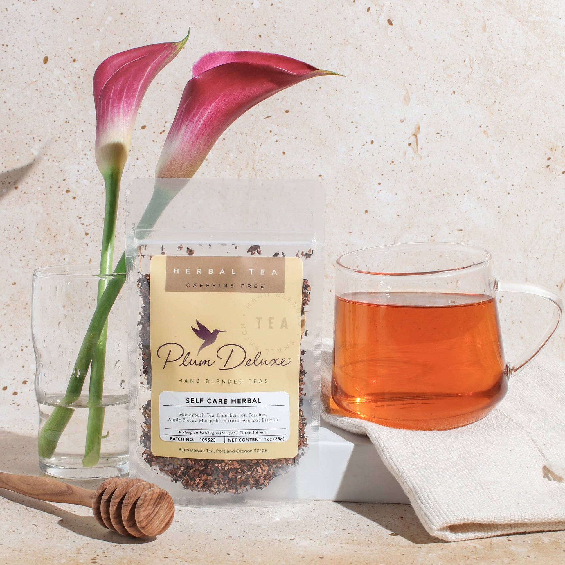 Plum Deluxe Self Care Apricot Elderberry Herbal Loose Leaf Tea Honeybush